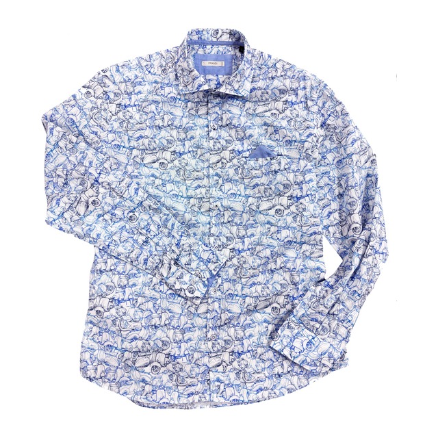 • PRANDI Men's ITALY cotton長袖プリントシャツ(510562206-02)